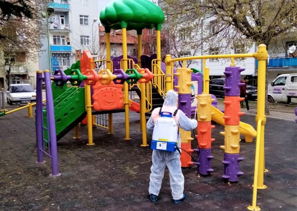 Vatandaşların yoğun kullandığı toplu taşıma araçları, parklardaki oyun grupları, kameriyeler, banklar, spor aletleri, sağlık ocakları, belediye hizmet binası, otobüs durakları ve kaldırımlar ekiplerce ilaçlanmaya devam ediyor.