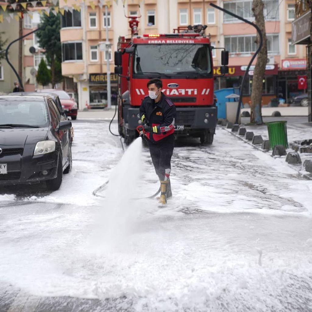 Belediye Başkanı Halil İbrahim Aşgın, gazetecilere yaptığı açıklamada, 4 ayrı dezenfeksiyon ekibiyle çalışmaları sürdürdüklerini belirterek, "Çalışmalarımızı yoğun bir şekilde sürdürüyoruz. Fatih Caddesi'ni baştan sona yıkadık. Çöp konteynerleri ve bidonlarını dezenfekte ettik." dedi.