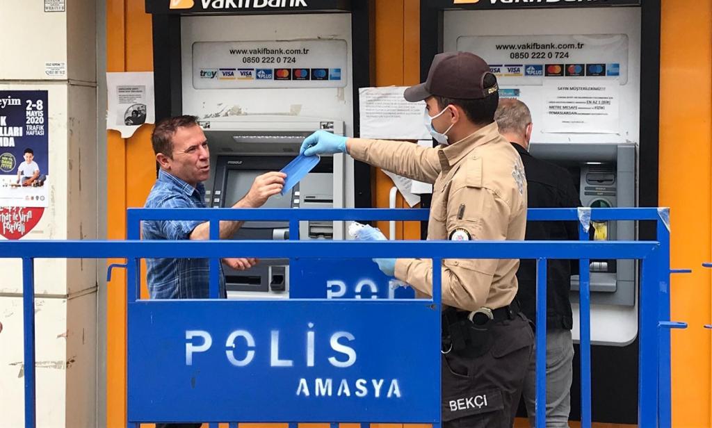 Amasya Emniyet Müdürlüğü ekiplerince şehrin merkezi bölgelerinde ve trafik kontrol noktalarında vatandaşlara maske dağıtımı devam ediyor.