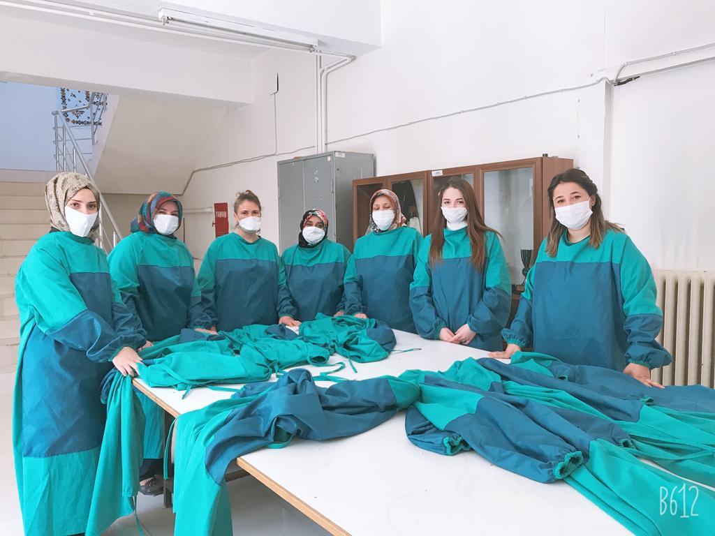 Zile İlçe Milli Eğitim Müdürü Bayram Polattimur, Tüm dünya ve ülkemiz koronavirüs tehdidi altında bir mücadele veriyor. Bu noktada ülkemizin göstermiş olduğu başarılı çalışmalar, gerek sağlık alt yapısı, gerek tıbbi malzeme noktasında gelişmiş ülkelerden çok iyi durumda olması bizi gururlandırdı. Zile ilçe Milli Eğitim Müdürlüğü olarak çorbada tuzumuz olsun istedik. Devletimize ne kadar katkımız olur bunun planlaması içinde olduk. İlk aşamada fedakârca çalışan sağlık çalışanlarımıza ne ihtiyaçları olduklarını sorduk. Onlarda koruyucu tıbbi önlük ihtiyaçlarının olduğunu belirttiler. Halk Eğitim Merkezimizde 250 adet önlük üretimi yaptık.