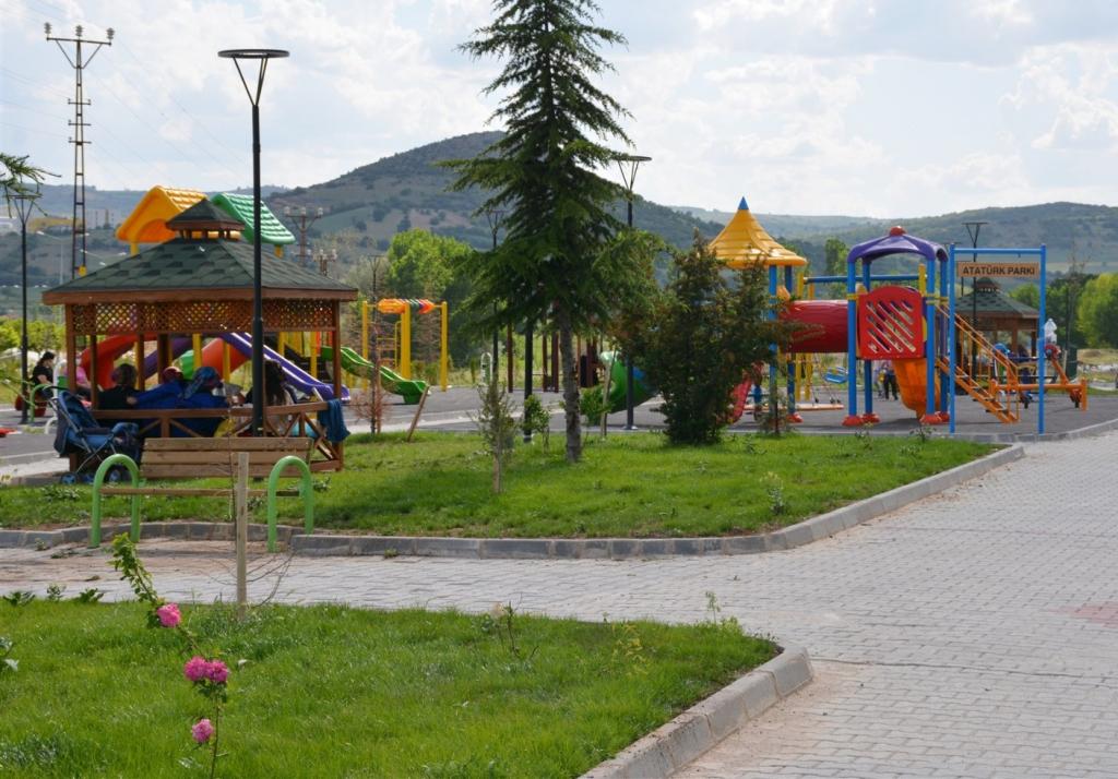 3600 metrekare yeşil alan bulunan Atatürk Parkı 100 çam, 50 gül ve 50 çeşit süs bitkileri ile donatıldı.