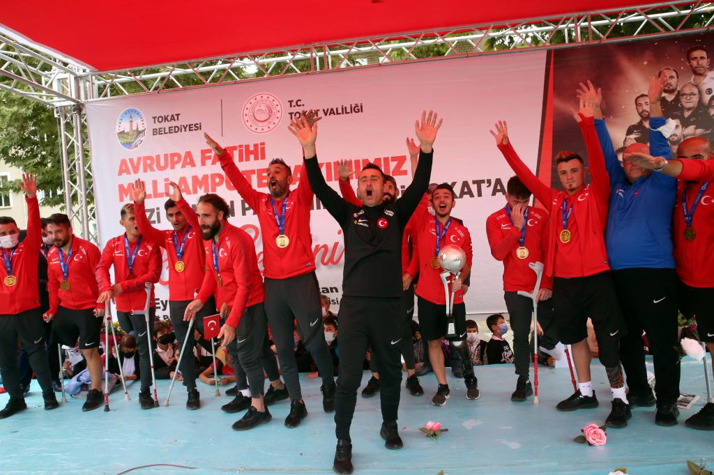 Üst üste ikinci kez Avrupa şampiyonu olan Ampute Milli Futbol Takımı teknik heyet ve oyuncuları Tokat'a geldi.