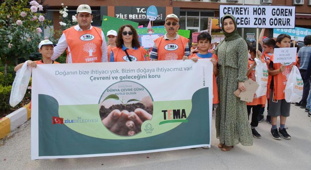 Türkiye Çevre Haftası nedeniyle Atiye Bekir Dinçerler ve Mehmet Akif İlkokulu öğrencileri, öğretmenleri, Tema Vakfı Zile Temsilcisi Hasan Öztürk ve Zile Belediye Başkan Yardımcısı İbrahim Ceyhan ile Zile Belediyesi Çevre Mühendisi Ayşegül Polattimur'un katılımıyla Cumhuriyet Caddesi’nde çevre temizliği yap ılarak toplanan atıkları geri dönüşüme kazandırıldı.