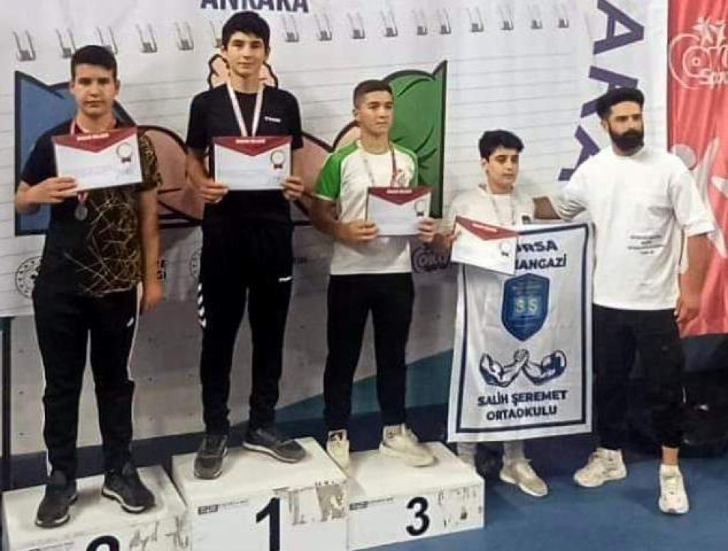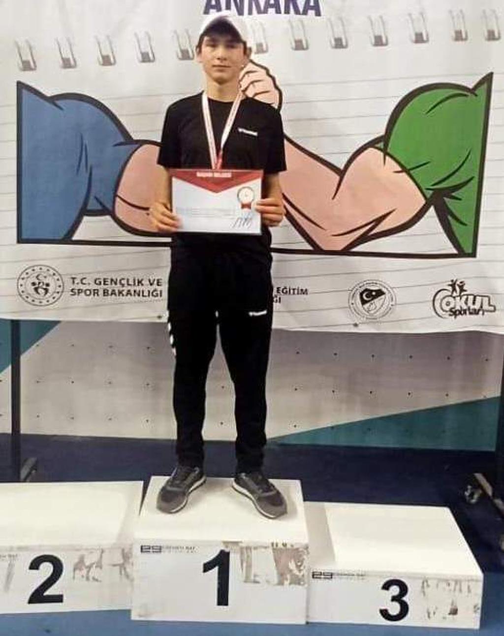 Muammer Ortaokulu öğrencisi Yusuf Keskin 65 kg sağ-sol kolda Türkiye birincisi