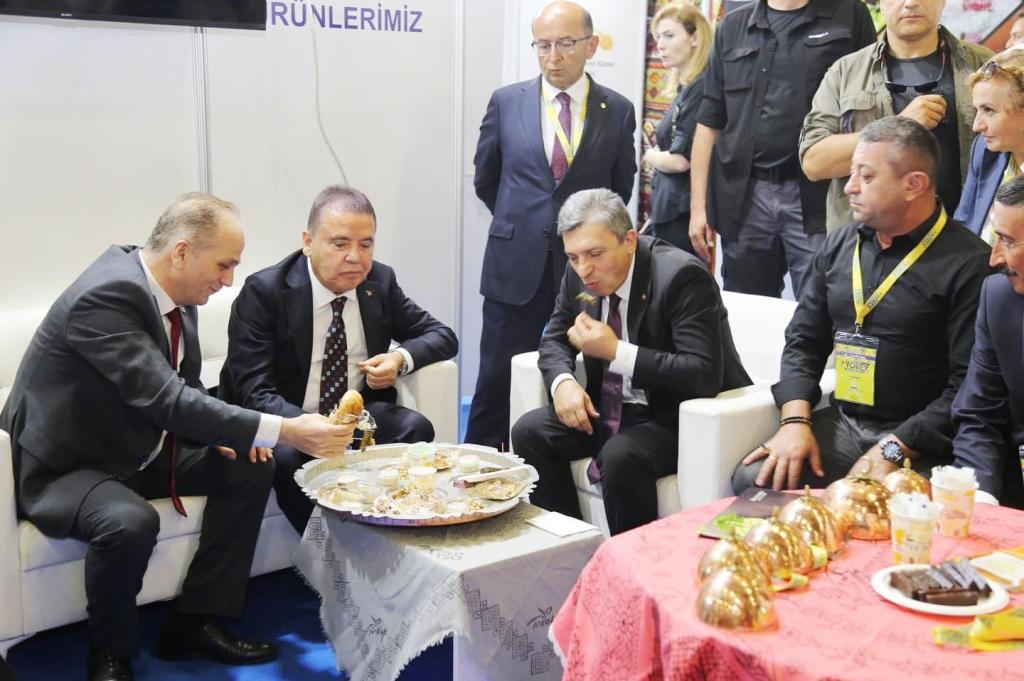 Şahin ve Antalya Büyükşehir Belediye Başkanı Muhittin Böcek Tokat standımızı