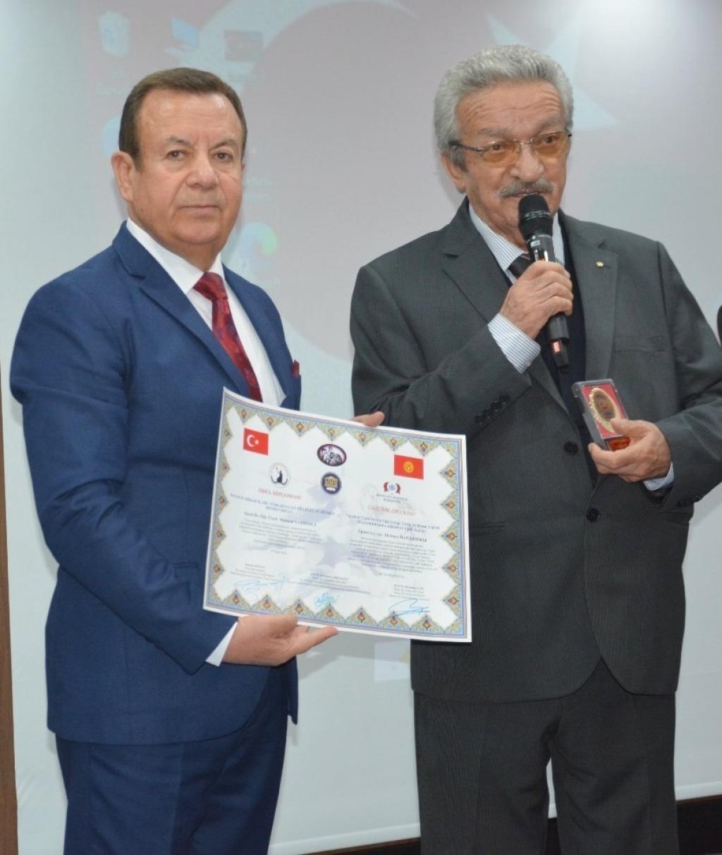 Hizmet Ödülü diploması ve madalyasını taktim etmiştir.