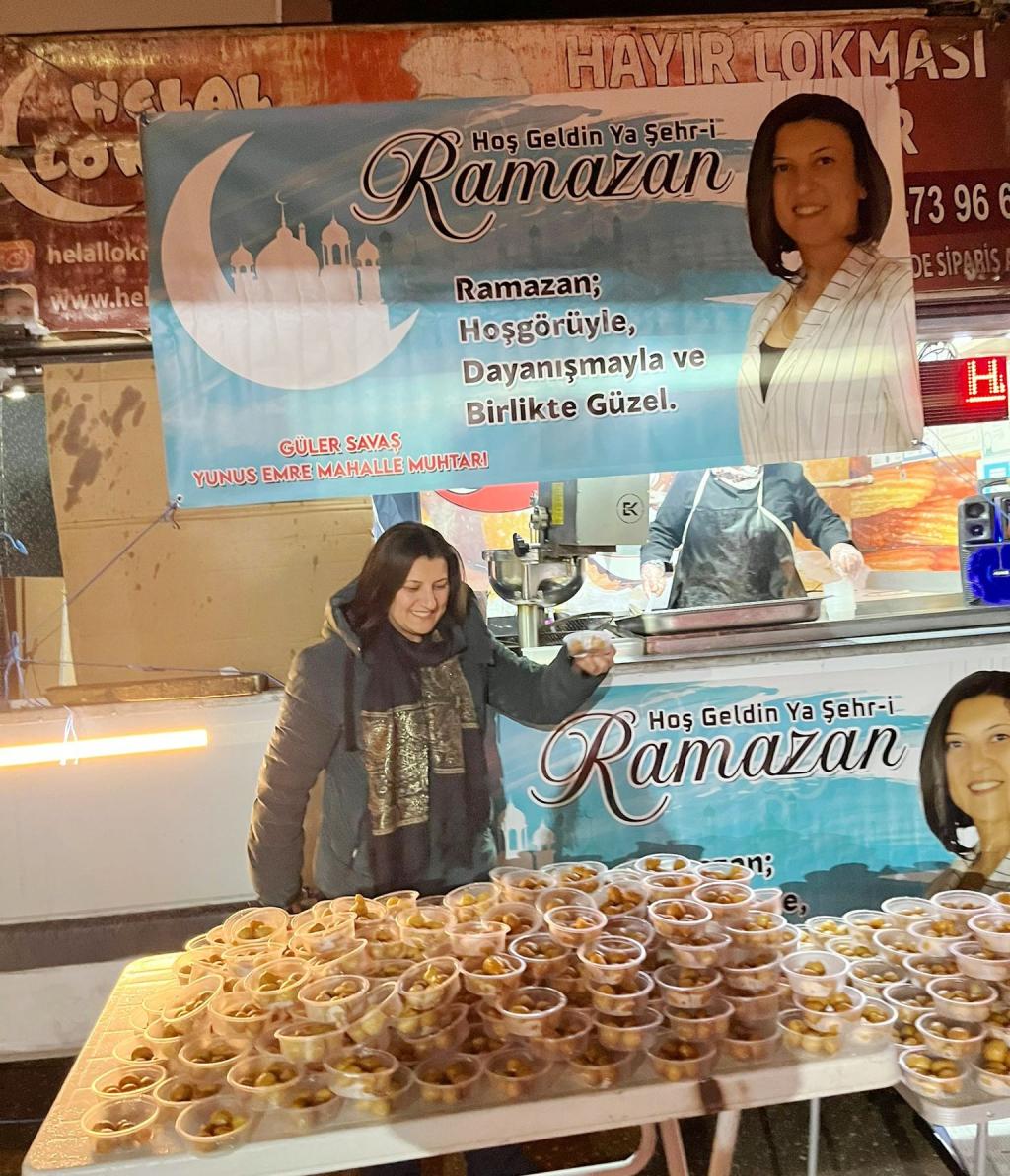 en büyük mahallesi olan Yunus Emre Mahallesi’nin muhtarı Güler Savaş teravih namazından